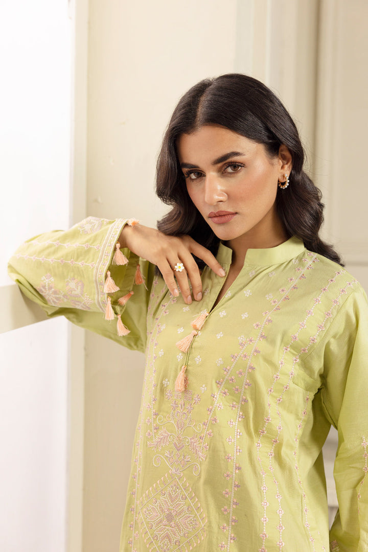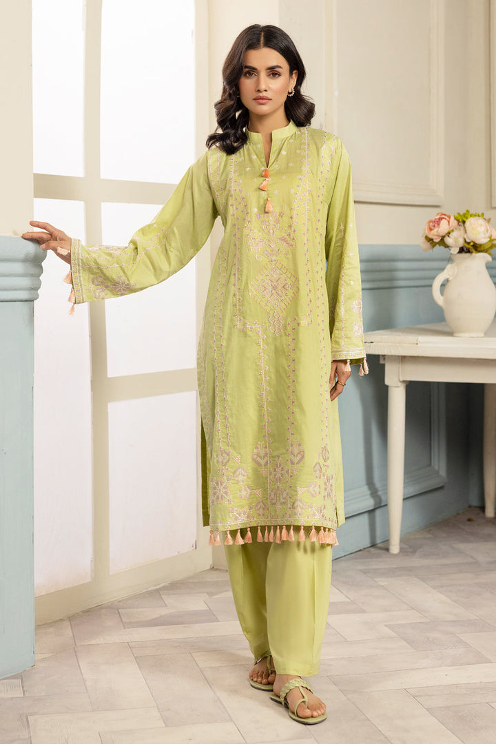 Embroidered lawn shirt with plain trousers