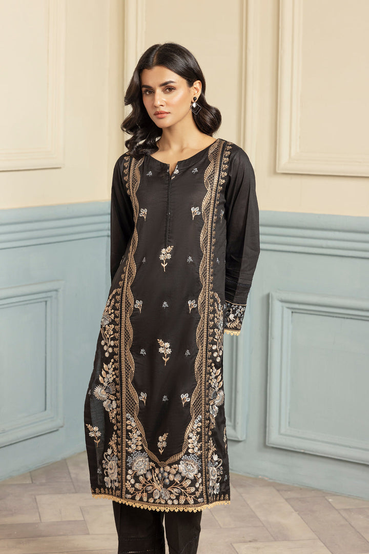 Embroidered lawn shirt with plain trousers
