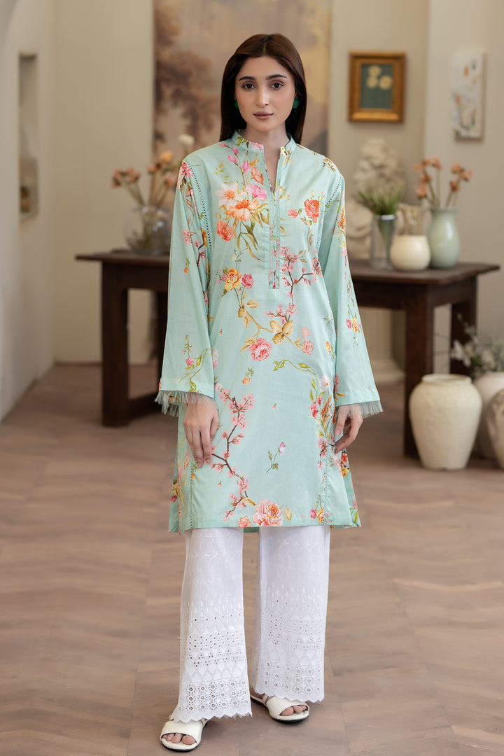 This elegant ensemble pairs a vibrant printed shirt with a delicately embroidered white schiffli trouser, adding a touch of sophistication to your everyday style. A perfect choice for those who appreciate timeless charm with a modern twist.