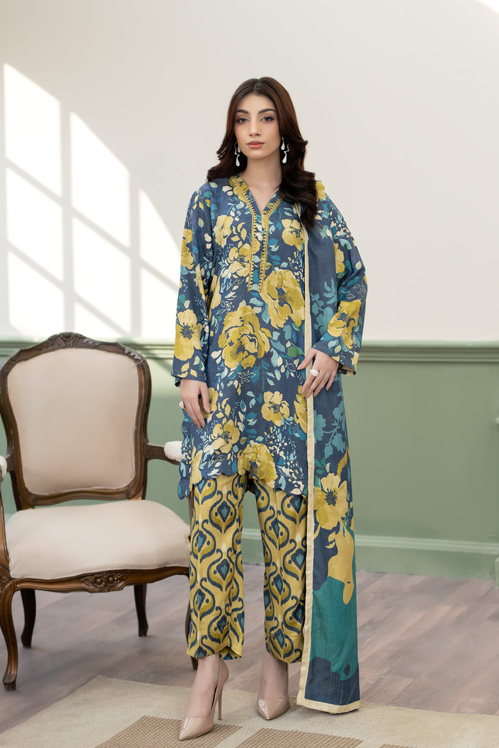 Designed with beautiful prints, rich colors, and comfortable silhouettes, this 3-piece set includes a matching shirt, trouser, and dupatta for a cozy yet elegant winter look.