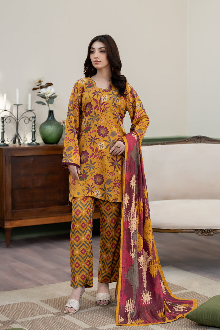 Designed with beautiful prints, rich colors, and comfortable silhouettes, this 3-piece set includes a matching shirt, trouser, and dupatta for a cozy yet elegant winter look.