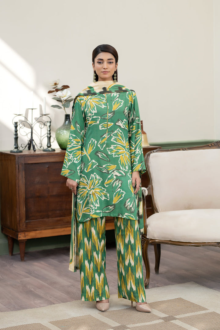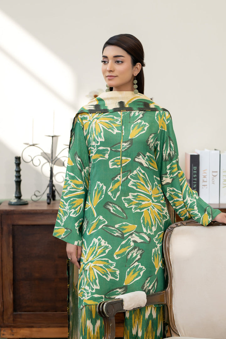 Designed with beautiful prints, rich colors, and comfortable silhouettes, this 3-piece set includes a matching shirt, trouser, and dupatta for a cozy yet elegant winter look.