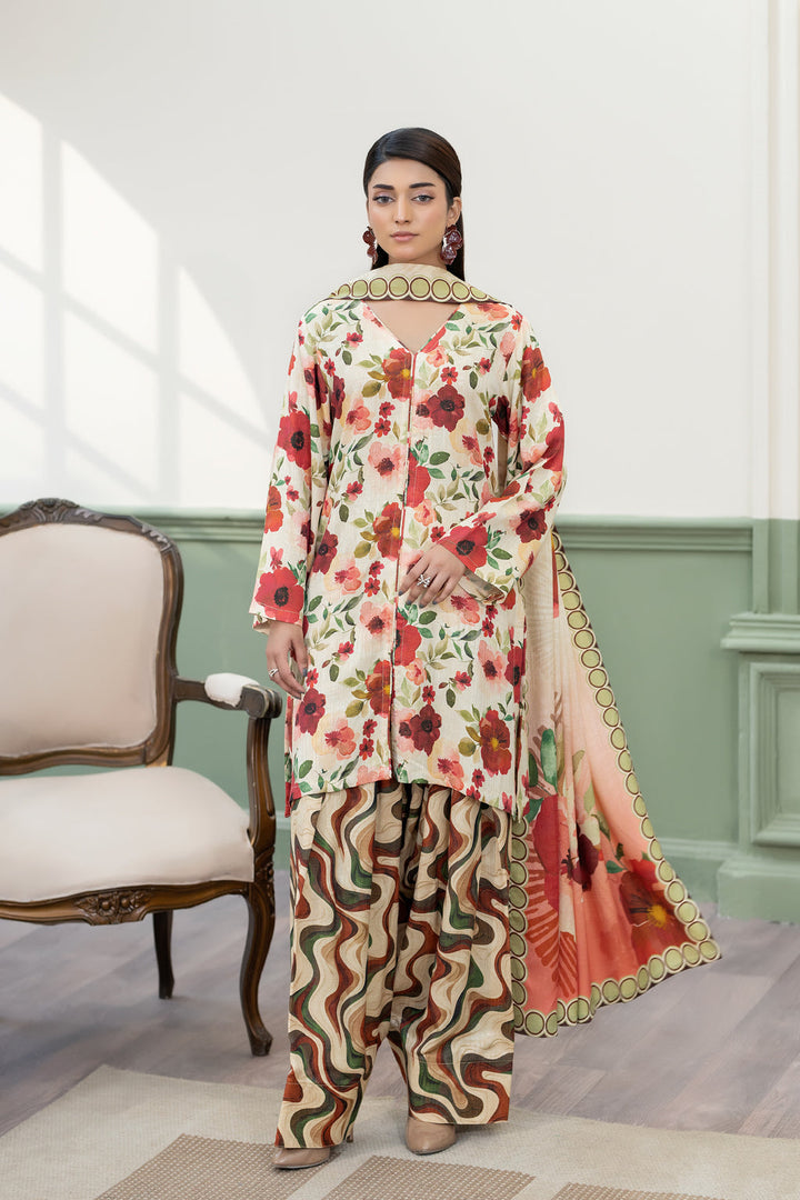Designed with beautiful prints, rich colors, and comfortable silhouettes, this 3-piece set includes a matching shirt, trouser, and dupatta for a cozy yet elegant winter look.